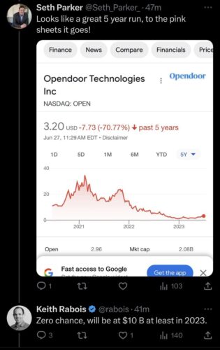 - Opendoor (co-founded 2014): Went public at $18 billion. Lost $662 million in 2021. Lost $1.4 billion in 2022. Lost $275 million in 2023. Stock crashed 97%. Nearly delisted. Rabois returns as Chairman in 2025, announces his own ignorance and intention to fire 85% of workforce to make himself look better:
