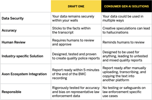 Axon is the company that sells Tasers to police departments. It just threw OpenAI’s GPT-4 into a product called Draft One to generate police reports from body camera audio.