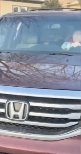 As Ross approaches, she very visibly turns the steering wheel, hard to the right. It has the unmistakable look of someone who wants to AVOID Ross. It’s not subtle, it’s obvious and he’s aiming, focused on it.