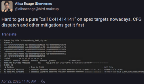 She landed the hardest primitive class on a target where the mitigation stack is designed to prevent exactly that. That’s damning evidence. Zero dupes from someone demonstrating that level of control is a substantive technical smackdown on Anthropic’s capability. Esage posted a view of the unassisted frontier for a reason. Mythos is NOT on it.
