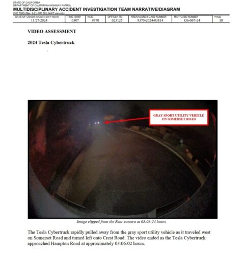 …the Bay Area News Group has been going through the testimony of the CHP investigation. And the deaths appear to be more the result of the vehicle fire… troublingly, that testimony also showed the Cybertruck’s doors could not be opened in the aftermath of the crash, preventing Riordan from pulling the other three victims from the flaming wreckage.