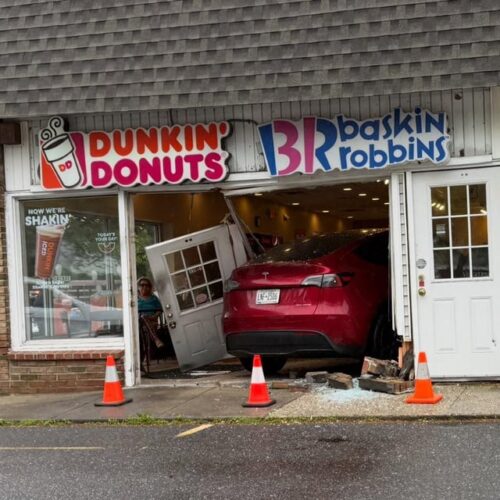 Police in Middletown Twp., Bucks County said that a “self driving issue” was being looked at as the cause for a single accident on the 900 block of South Woodbourne Road. A Tesla operated by a New Jersey resident plowed into the side of a Dunkin Donuts, at the corner of Trenton and Woodbourne Road.