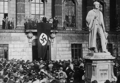 The regime never framed their imposition as imposing their ideology. Like with Hegseth today, all of it was framed as removing ideology, purging “globalists” (Jewish physics) and “radical” (cosmopolitan) influence. It called Germans “un-German” in order to claim institutions suddenly had been “captured.” The regime radically shifted the political narrative in order to falsely announce itself, on the extreme right, as a neutral position. Independent thought, let alone anything except the most extreme loyalty to the dictator, was branded contamination.
